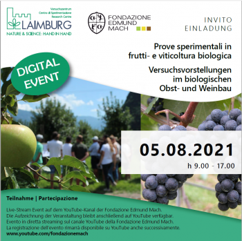 Fondazione Edmund Mach la mattina, e il Centro di Sperimentazione Laimburg nel pomeriggio, realizzeranno due approfondimenti rispettivamente su viticoltura e frutticoltura biologica, nel corso dei quali saranno presentate le attività di sperimentazione condotte nel 2021 in provincia di Trento e Bolzano.