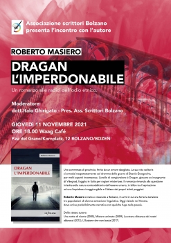 L'autore Roberto Masiero presenta il suo nuovo romanzo. Accompagneranno le letture e i commenti alcune immagini con slides. Moderatore. dott. Italo Ghirigato Presidente ass. scrittori di Bolzano