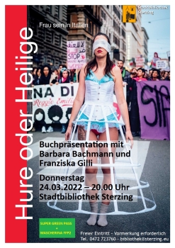 Giovedì 24 marzo, le due autrici Barbara Bachmann e Franziska Gilli presenteranno il loro libro "Santa o sgualdrina. Essere donna in Italia" (Raetia 2021).