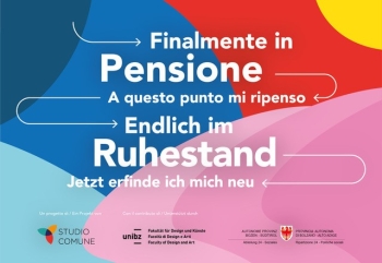 Ritorna Finalmente in pensione, a questo punto mi ripenso, un percorso dedicato a chi sta andando o è da poco in pensione. Un progetto pilota triennale (2020-2022) realizzato da studio comune, cooperativa sociale di Bolzano, con il contributo dell’Ufficio Anziani e Distretti sociali della Provincia Autonoma di Bolzano e il patrocinio della Facoltà di Arti e Design della Libera Università di Bolzano.