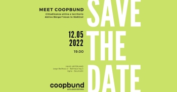 Coopbund Alto Adige Südtirol ha il piacere di invitarvi a un incontro informativo gratuito organizzato in collaborazione con il Comune di Egna dedicato alle cooperative di comunità e alle opportunità offerte dalle comunità energetiche. L’incontro si terrà giovedì 12 maggio a Egna presso “Haus Unterland”, Largo Ballhaus 2 dalle ore 19.00 alle 20.00. Interverranno Heini Grandi, membro della presidenza di Coopbund e Dario Sacchetti, project manager della cooperativa Ötzi Elettricità mia. Sarà presente anche la sindaca di Egna Karin Jost e modererà l’incontro Markus Frei, uno dei soci fondatori della cooperativa di comunità b*coop. Saremo inoltre presenti in piazza a Egna dalle 17.00 alle 19.00 con uno stand informativo. Sono invitati all'evento tutti coloro che hanno a cuore lo sviluppo sostenibile della loro comunità e quanti sono interessati al tema delle comunità energetiche. Potete estendere l’invito alle persone che ritenete possano essere interessate. Per motivi organizzativi si prega di comunicare la propria partecipazione scrivendo a info@coopbund.coop