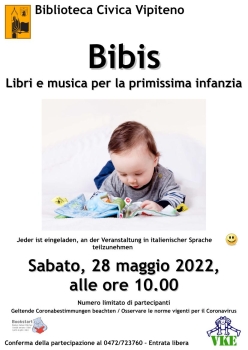 Sabato 28 maggio, alle ore 10, avrà luogo il prossimo appuntamento “Bibis – Libri e musica per la primissima infanzia” nella Biblioteca Civica di Vipiteno, dedicato ai bambini con un’età dai 0 ai 3 anni. La musicista Erica Rizzo presenterà libri adatti ai più piccoli offrendo contemporaneamente la possibilità di giocare con la musica. La lettura e le esperienze musicali in questa età precoce costituiscono un’esperienza importante per lo sviluppo dei bambini e durante questi incontri bambini e genitori conosceranno possibilità, come poter integrare la lettura e la musica anche a casa. Il prossimo incontro avrà luogo a ottobre, dopo la pausa estiva.