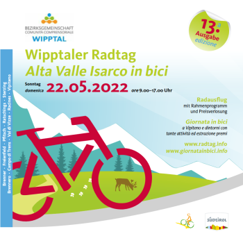 Questa manifestazione è un ottima possibilità per lasciare a casa l‘automobile e per passare con la famiglia, gli amici ed altri appassionati una giornata sul dueruote. Tante associazioni tra Campo di Trens, Prati, Vipiteno, Mareta, Colle Isarco e il Brennero presenteranno un programma variopinto di animazione, ristoro e divertimento attorno alla bicicletta.
