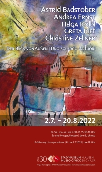 Allora riusciamo a fare una cosa quasi impossibile - riconosciamo l'essenza delle cose. Il loro linguaggio, le loro vibrazioni, la loro profondità, la loro anima. Questa avventura richiede tutta la forza, la passione, la disponibilità a ricevere, l’apertura e le capacità richieste, per trasformare lo sguardo dall'esterno verso l'interno. Nell’agosto 2019 cinque artiste di Murnau partirono alla volta di Chiusa per esplorarla pittoricamente nel corso di cinque giorni. Maria Gasser, l'allora Sindaca di Chiusa, fu l'iniziatrice del progetto. L'Associazione delle Colonie Artistiche Europee - euroArt, di cui fanno parte sia Chiusa che l'Associazione artistica Tusculum di Murnau, promuove lo scambio attivo di artisti e artiste tra le singole Colonie di artisti.