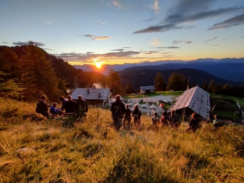 Quando il sole ancora deve sorgere, l’alba illumina il cielo con colori incantevoli, ed è proprio con le prime luci del mattino che ci incamminiamo sulla Malga Luco (Laugenalm), dove veniamo ripagati di una vista sulle dolomiti a dir poco mozzafiato. Dopo l’emozionante avventura, possiamo gustarci una ricca colazione sulla terrazza della malga.