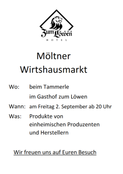 Venerdì 2 settembre, presso il ristorante zum Löwen, a partire dalle ore 20.00, si terrà un mercato. Saranno venduti prodotti di produttori e fabbricanti locali.