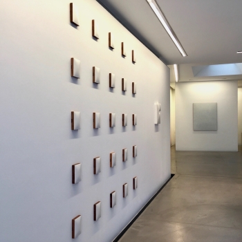 Le opere in mostra sono icone contemporanee dalla rappresentazione visiva rarefatta alle estreme conseguenze. Delle icone e della loro valenza spirituale rimane il procedimento realizzativo; una pratica sensibile, quella di Bergquist, che prevede supporti in legni pregiati come il pero o il ciliegio, fissati con incastri a coda di rondine senza l’ausilio di chiodi o collanti chimici, secondo i metodi delle tavole medievali, rivestiti poi in tela di lino belga e impregnati di gesso e pigmenti. Le superfici lignee sono infine trattate a mano, sottoposte a un durissimo labor limae per essere domate in forme lievemente concave o convesse, fino alla creazione di una superficie bianca e opaca, a cui l’artista dà vita attraverso l’applicazione di tempera ad encausto.