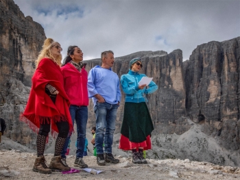 Ore 14:00 Concerto con i gruppi jodel Huja e LissnArno assieme al trio corni “Cors da munt Sassongher” presso il Rifugio Franz Kostner.