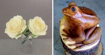 Elemento naturale protagonista anche delle sculture di Franco Garasi: è il tronco trovato durante le escursioni in montagna o scartato dai falegnami a suggerire l'opera da scolpire. "Ho l'amore nel valorizzare i tronchi. Agli occhi di molti questi appaiono come semplici pezzi di legno, ma io vedo una forma, un animale o un corpo. Ho già l'idea di cosa andrò a scolpire. Devo essere preciso, ma mai troppo, perché a guidarmi sul come realizzare l'opera è sempre e solo il legno”. Tra i soggetti maggiormente scolpiti dall'artista di Appiano vi sono nudi femminili e motivi religiosi. Nell'ultimo anno, però, la sua attenzione si è spostata su altri protagonisti. "Oggigiorno realizzo spesso animali. Il tutto parte per caso perché volevo scolpire un gatto con legno di cedro da regalare alla mia nipotina. Poi da cosa nasce cosa e da un felino sono diventati tre, a cui si aggiungono giraffe e rane, tanto da arrivare ad avere pezzi sufficienti per la prossima mostra".