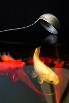 Nell’estate torrida un pesce rosso affiorò sull’acqua dello stagno, senza vita. Non aveva resistito al calore? Era semplicemente invecchiato e morto per debolezza, che può capitare anche ai pesci? Era bello quando lo recuperai e posi su un fondo solido, rossiccio il suo tessuto di scaglie, i suoi occhi mi fissavano. Meritava un ritratto prima di seppellirlo.