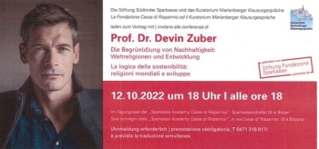 La Fondazione Cassa di Risparmio ed il Kuratorium Marienberger Klausurgespräche invitano alla conferenza in lingua tedesca diProf. Devin Zuber: