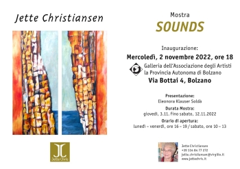 L‘artista Jette Christiansen, che vive in Alto Adige da oltre 50 anni, è originaria della Danimarca. Sebbene si sia avvicinata alla pittura solo in un secondo momento, oggi è possibile ammirare un immenso spettro di lavori, incentrati sulla natura morta e sulla pittura di paesaggio. Dopo vari soggiorni di studio e corsi di pittura internazionali, Jette Christiansen è stata accompagnata artisticamente per un certo periodo da Gotthard Bonell.