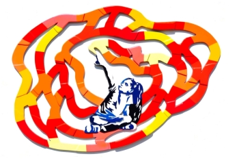 La ragazza che siede al centro di un percorso labirintico e punta decisa l’indice verso l’alto ad indicare una probabile via d’uscita è Hope. Questo è il titolo dell’opera che ci invita, in un percorso dialettico, tra le diciotto installazioni realizzate da Dario Brevi per la mostra personale alla galleria Antonella Cattani contemporary art di Bolzano.