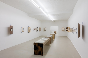 L’allestimento concepito da Martino Gamper è pensato nel rispetto di queste tracce personali, creando uno sfondo a supporto dei materiali e mantenendo intatte gli interventi di Henry Martin stesso.