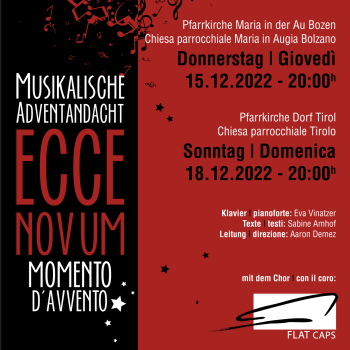 Magazine mensile gratuito di cultura, eventi e manifestazioni in Alto Adige-Südtirol, Trentino e Tirolo. Testata iscritta al registro stampe del Tribunale di Bolzano al n. 25/2002 del 09.12.2002 | Iscrizione al R.O.C. al n. 12.446. Editore: InSide Società Cooperativa Sociale ETS | Via Louis Braille, 4 | 39100 Bolzano | 0471 052121 | Questo indirizzo email è protetto dagli spambots. È necessario abilitare JavaScript per vederlo..