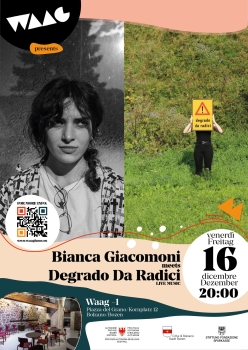 Questo venerdì il Waag Cafè apre le sue porte per una serata dedicata al songwriting. Due giovani cantautrici locali, Bianca Giacomoni e Degrado da radici (aka Camilla Ruzzu) porteranno i loro brani unplugged in una dimensione ravvicinata intima. Concerto sotto terra per musica sotto pelle.