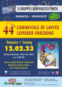 In caso di maltempo la manifestazione si terrá la domenica successiva 19 febbraio 2023. | Bei Schlechtwetter wird die Veranstaltung auf den darauffolgenden Sonntag, den 19. Februar 2023 verlegt.