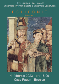 L’Ensemble Vox Dulcis si esibirà unitamente all’Ensemble di flauti a becco Thylman Susato composta da allievi ed ex allievi delle scuole secondarie di primo grado di Brunico, Dobbiaco ed Appiano.