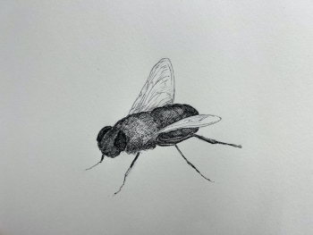 The Fly prende il nome da una punizione esercitata dalle guardie carcerarie, le quali obbligavano i prigionieri a catturare 200 mosche e moscerini a mani nude, ogni giorno. Tra le altre pene inflitte, quali ad esempio l’infame “motocicletta”, la tortura, l’isolamento, i pestaggi—definite “infernali” dai detenuti politici—l’assurdità di questa punizione viene descritta da Htein Lin con i toni della commedia macabra, che l’autore applica alle sue espressioni facciali mentre, legato a una sedia—forse in isolamento—cerca di scacciarsi di dosso delle mosche accanitesi contro di lui. La prima rappresentazione di The Fly al di fuori del carcere ebbe luogo al Gangaw Village Artist Group Show di Yangon a inizio 2005, e successivamente all’Institut Français nell’agosto dello stesso anno. L’artista Moe Satt ha scritto di aver visto Htein Lin interpretare The Fly nel 2005: