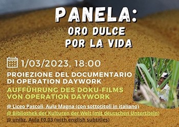 01 marzo 2023: Il documentario “Panela: oro dulce por la vida”, prodotto da Operation Daywork e girato nelle 3 settimane di permanenza del team di OD in Ecuador, racconta della vita e del lavoro dei contadini di COPROPAP, una cooperativa di produttori di panela (zucchero di canna) di Pacto, Ecuador, vincitrice del Premio Diritti Umani 2022 di Operation Daywork.