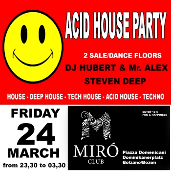 HOUSE MUSIC PARTY 2 DANCE FLOORS DJ Mr. ALEX - HUBERT - STEVEN DEEP HOUSE - DEEP HOUSE - TECH HOUSE - ACID HOUSE - TECHNO ? We are the Music maker create HOUSE MUSIC EVENTS ?ACID HOUSE PARTY one of the best House Clubbin in Bolzano