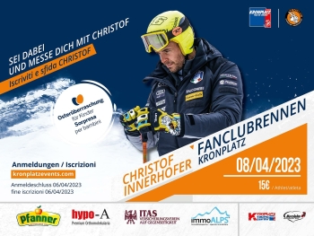 Christof Innerhofer invita tutti a partecipare alla gara del suo fan club, il 08 aprile, sulla montagna locale di Brunico. La gara si svolgerà sulla pista n. 3 Pramstall con arrivo al rifugio Herzl Alm presso la stazione intermedia della cabinovia Ried. La Premiazione si terrà sull’ampia terrazza al sole, di seguito ci sarà come ogni anno la lotteria con tanti premi fantastici. Per i nostri piccoli ospiti abbiamo preparato una piccola sorpresa, Silvia Fontanive si occupa della moderazione ed anche AlbiDJ darà il suo meglio per trasformare la giornata in una grande festa.
