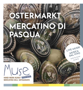 MUSE - la comunità di artisti per la conservazione della tradizione artigianale del Renon - vi invita al mercato artigianale durante il periodo pasquale nel parco dell‘Hotel Post-Victoria a Soprabolzano, dalle ore 10-18.