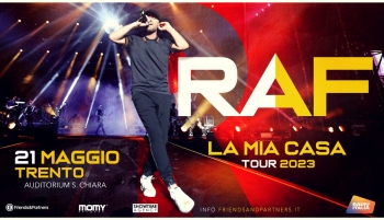 A poche settimane dalla pubblicazione delle prime date della prossima stagione live LA MIA CASA TOUR 2023, a grande richiesta RAF annuncia altri 7 nuovi imperdibili concerti nei prestigiosi palchi dei teatri italiani: oltre alle date di Roma, Milano, Bari e Firenze, la tournée arriverà a Udine, Bologna, Torino, Trento, Napoli, Padova e a Pescara.