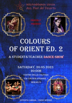 Spettacolo di Danza Orientale classica e moderna, Bollywood, stile FatChanceBellydance®, FCBD Flamenco Dialect, Tribal Fusion con insegnanti e allieve dell'Associazione Wüstenblumen-Fiori del deserto