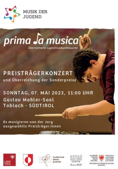 Dal 6 al 16 marzo 2023 si è svolto a Dobbiaco il concorso tirolese "prima la musica". In cinque luoghi di esibizione a Dobbiaco, più di 800 giovani talenti del Tirolo del Nord, Tirolo dell'Est e dell'Alto Adige hanno presentato un programma musicalmente impegnativo e hanno brillato con performance musicali di alto livello. Il 7 maggio, in occasione dell'evento conclusivo, saliranno sul palco 11 vincitori del concorso e verranno consegnati vari premi speciali.