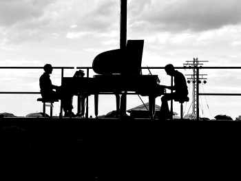 Bruno Walter, collega e in seguito amico intimo di Mahler, realizzò una trascrizione pianistica del brano a quattro mani già nel 1897. Questa ha costituito la base per un progetto - originariamente sviluppato nel 2021 come variante esecutiva conforme alle restrizioni covid - che da allora è stato ascoltato in numerosi concerti e registrato su CD. I due pianisti, che sostengono in modo impressionante la parte principale della serata, un trombettista, i due solisti vocali e il coro traducono il mondo sonoro sinfonico di Mahler in un linguaggio estremamente affascinante, in gran parte cameristico.