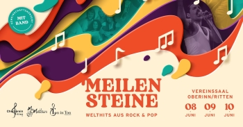 Der Chorverein Ritten, Mix Melodium und das Ensemble Ton in Ton präsentieren unter der Leitung von Sandra Auer das Konzert “MEILENSTEINE - Welthits aus Rock und Pop” am 8., 9., und 10. Juni um 20 Uhr im Vereinssaal Oberinn am Ritten.