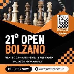 Dopo vent’anni di successi, l’Open di Bolzano continua a crescere, confermandosi un punto di riferimento per giocatori di ogni livello, italiani e stranieri, che desiderano vivere un’esperienza unica tra scacchi, cultura e ospitalità altoatesina.