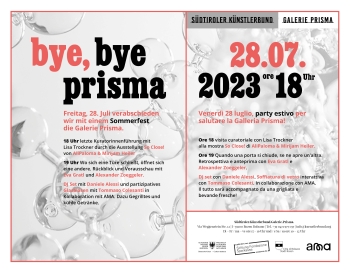 Con il finissage della mostra So Close! di AliPaloma e Mirijam Heiler ci congediamo dalla Galleria Prisma. La Prisma, nella sede del Südtiroler Künstlerbund chiude i battenti dopo 34 anni di attività con oltre 300 mostre al suo attivo.
