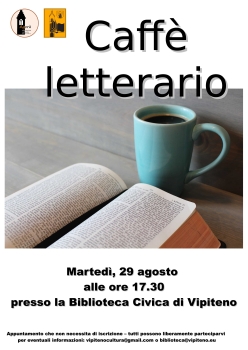 Il Caffè letterario invita tutti al sesto incontro dell'anno, martedì 29 agosto, alle ore 17.30, presso la Biblioteca Civica di Vipiteno. Il tema sarà una "biografia". Tutte/i sono benvenute/i e possono anche solo godersi la discussione o gli altri suggerimenti di libri da parte del circolo letterario o proporre letture attinenti.