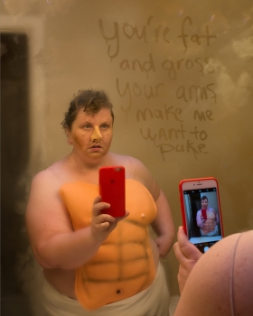 In The Bully Pulpit, Haley Morris-Cafiero esplora il fenomeno sociale del cyberbullismo sovvertendo i profili pubblici delle persone che hanno tentato di molestarla online. Le loro foto trovate in rete sono reinscenate nelle sue immagini con parrucche, abiti e semplici protesi, e sovrapposte con