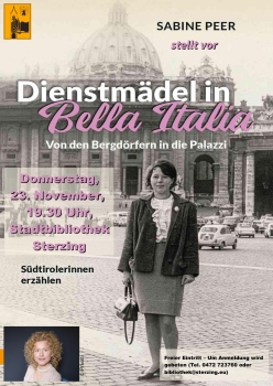 L'autrice Sabine Peer, dopo la pubblicazione del suo libro di successo "Dienstmädel in Bella Italia. Südtirolerinnen erzählen", si è messa di nuovo alla ricerca di storie di giovani donne altoatesine che hanno lavorato come domestiche, bambinaie e dame di compagnia nell’Italia degli anni '50 e '60 e le ha pubblicate in un secondo volume. Le storie, basate su fatti realmente accaduti, forniscono uno spaccato di biografie emozionanti e commoventi. Nel seguito del libro si getterà uno sguardo all’interno delle mura di un monastero milanese, che impiegava domestiche altoatesine, si leggerà della tata del caporedattore della RAI di Roma e scopriremo il commovente destino della giovane Rosa, che si fidava del suo grande amore e ne rimase amaramente delusa. Nel nuovo libro, Sabine Peer racconta, ancora una volta, in modo divertente e avvincente lo sfruttamento, l’ozio, avventure irritanti e viaggi emozionanti e la ricerca della felicità personale nella propria vita.