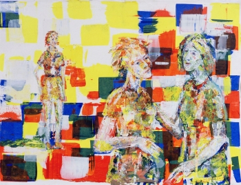Una percezione spontanea caratterizza tutti gli elementi all’interno dell’opera. Le persone raffigurate (anche in coppia) sono collocate esse stesse in un immaginario “spazio di colore e luce”, dove comunicano attraverso sguardi e gesti. Le differenze dimensionali suggeriscono una certa distanza spazio-temporale, che rende tangibile il “percorso umano”. [Testo: Richard Firler]