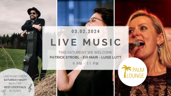 Tre artisti locali, Patrick Strobl, Evi Mair e Luise Lutt, che da solisti o a più voci sapranno accompagnare il vostro drink nella Palm Lounge con noti brani del mondo pop, soul e funky. Saranno accompagnati dalla raffinata jazz band "Giro'sFourth", composta da Michele Giro (pianoforte), Matteo Rossetto (chitarra), Dominik Told (basso) e Federico Groff (batteria).