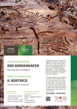 I bostrici costituiscono un elemento importante dell'ecosistema del bosco: come decompositori di alberi vecchi e malati e come nutrimento per altre specie. Allo stesso tempo, possono anche causare danni enormi. Questa piccola mostra, realizzata dalla scuola media di Castelrotto, fornisce un'idea sullo stile di vita di questo insetto.