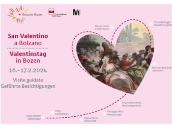 San Valentino è alle porte e l’Azienda di Soggiorno di Bolzano ha organizzato un apposito programma di visite guidate che partiranno venerdì 16 febbraio alle ore 14.30, con doppio appuntamento il giorno successivo, sabato 17 febbraio, alle ore 10.30 e alle 14.30.