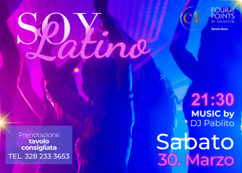 Immergiti nell'atmosfera caliente della nostra serata "Soy Latino" presso la sala Foyer 0 dell'Hotel Four Points by Sheraton Bolzano!