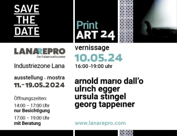 In collaborazione con quattro artisti altoatesini - Arnold Dall'O, Ulrich Egger, Ursula Stingel e Georg Tappeiner, la nostra azienda organizza una mostra di opere che utilizzano i più recenti processi di stampa digitale.