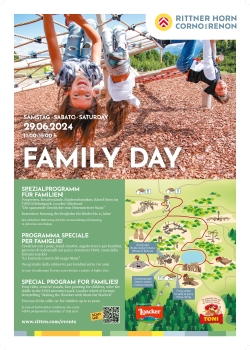 Programma speciale per famiglie dalle ore 11-15 e menù per bambini nelle baite del Corno del Renon. Uso gratuito della cabinovia del Corno del Renon per i bambini fino a 14 anni.
