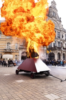 Una folla in marcia, un motore, un'esecuzione: l’opening della 24esima edizione di Transart sarà letteralmente esplosivo. L’artista visivo e regista teatrale Kris Verdonck ci invita a seguirlo lungo le strade di Bolzano fino a raggiungere il luogo in cui si consumeranno un processo e una condanna a morte secondo lo schema di un’esecuzione medievale. La processione conduce sul patibolo non una persona, ma un motore a combustione interna: oggetto quotidiano, normalmente nascosto alla vista, simbolo del folle progresso tecnico conosciuto dall'umanità nel corso del XXI secolo, ma anche delle catastrofi ecologiche che attanagliano il pianeta. Una volta lette le accuse, ispirate ad atmosfere di marinettiana memoria, la sentenza si abbatterà sull’accusato che verrà distrutto in una spettacolare e fragorosa esplosione. Atto simbolico e purificatore, invito al cambiamento, EXHAUST approfondisce le dinamiche dell'uso della violenza per la risoluzione dei conflitti e si fa monito contro l'arroganza degli uomini.