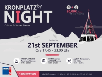 Avete mai desiderato esplorare il Plan de Corones di notte? Lasciarvi stupire dal tramonto sul crinale principale delle Alpi e delle Dolomiti e combinare cultura e divertimento in una sola serata!