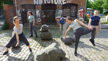 Nella performance DI SASSO cinque performer si confrontano con le sfide poste dal cambiamento climatico. Utilizzando la pietra, l'acqua, la parola e il movimento costruiranno paesaggi che inviteranno il pubblico a sognare ma anche a riflettere.