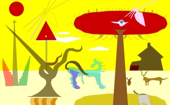Immagine: dettaglio dell’illustrazione di Leonardo Roperti liberamente ispirata all’opera del pittore spagnolo (catalano) Joan Mirò “Terra llaurada” – 1923