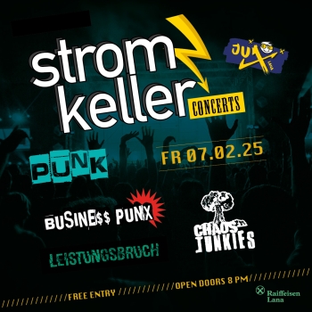 Stromkeller è una serie di concerti annuali organizzati dal centro giovani Jux. Il nostro obiettivo è offrire alle band locali un palcoscenico per valorizzare e promuovere la cultura musicale di Lana e dintorni. Crediamo che la diversità della nostra società debba essere vissuta e celebrata attraverso una vasta gamma di generi musicali.