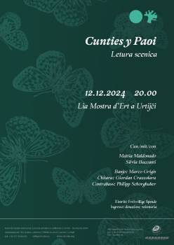 Proponiamo una lettura scenica dell’opera (ladino della Val Badia). Si tratta di un monologo accompagnato da pittura e musica dal vivo. Mentre l’autore legge – e passa dal ruolo di pastore a quello di narratore – i disegni di Silvia vengono proiettati sul muro per accompagnare la narrazione. I disegni sono realizzati dal vivo. Tra un atto e l’altro viene suonata musica evocativa.
